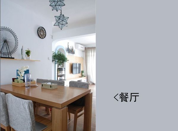 装修案例清新淡雅,墙面不进行大的改动,通过直线条与曲线的搭配来贯穿于整个设计,独特的灯具,装饰物,餐桌,背景墙等,使整个小户型的客餐厅清新而不失现代气息,也巧妙的增加了田园的柔美视觉效果,装饰盆栽以及温馨的色彩给人以回归自然的清新,让人更好的享受家的感觉。简单的色调让整体空间不复杂,清新的生活气息更加让很多人所喜欢。