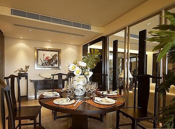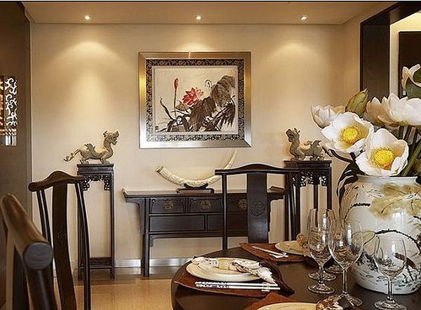 餐厅餐桌及餐边柜想统一颜色沉敛深厚文化品位浓郁