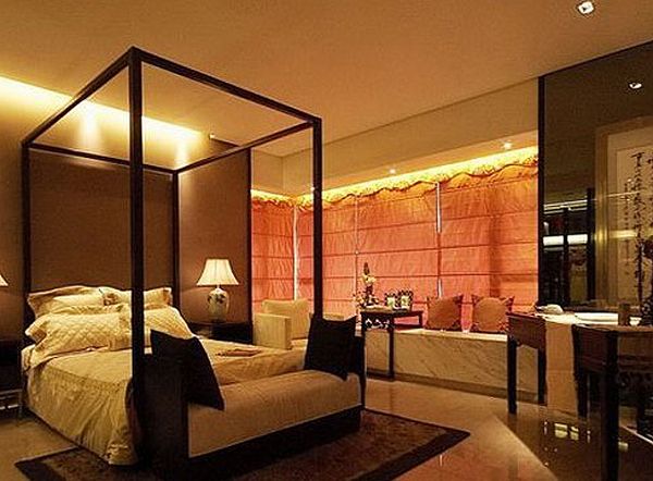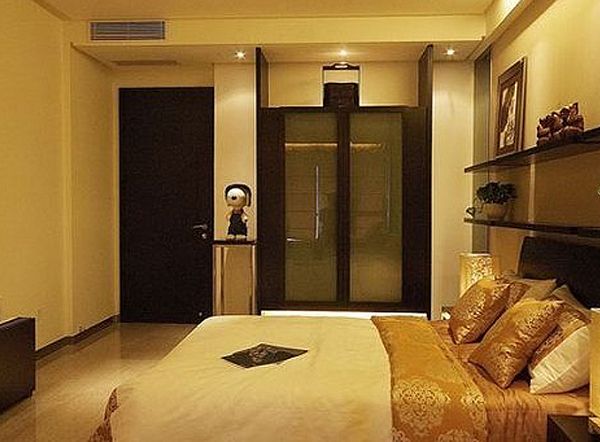 主卧房搭配啦深咖啡色系烤漆玻璃空间看起来更宽阔