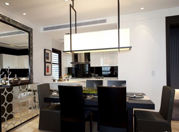 餐桌跟吊灯配置通过灯光的投射让餐厅显的大气